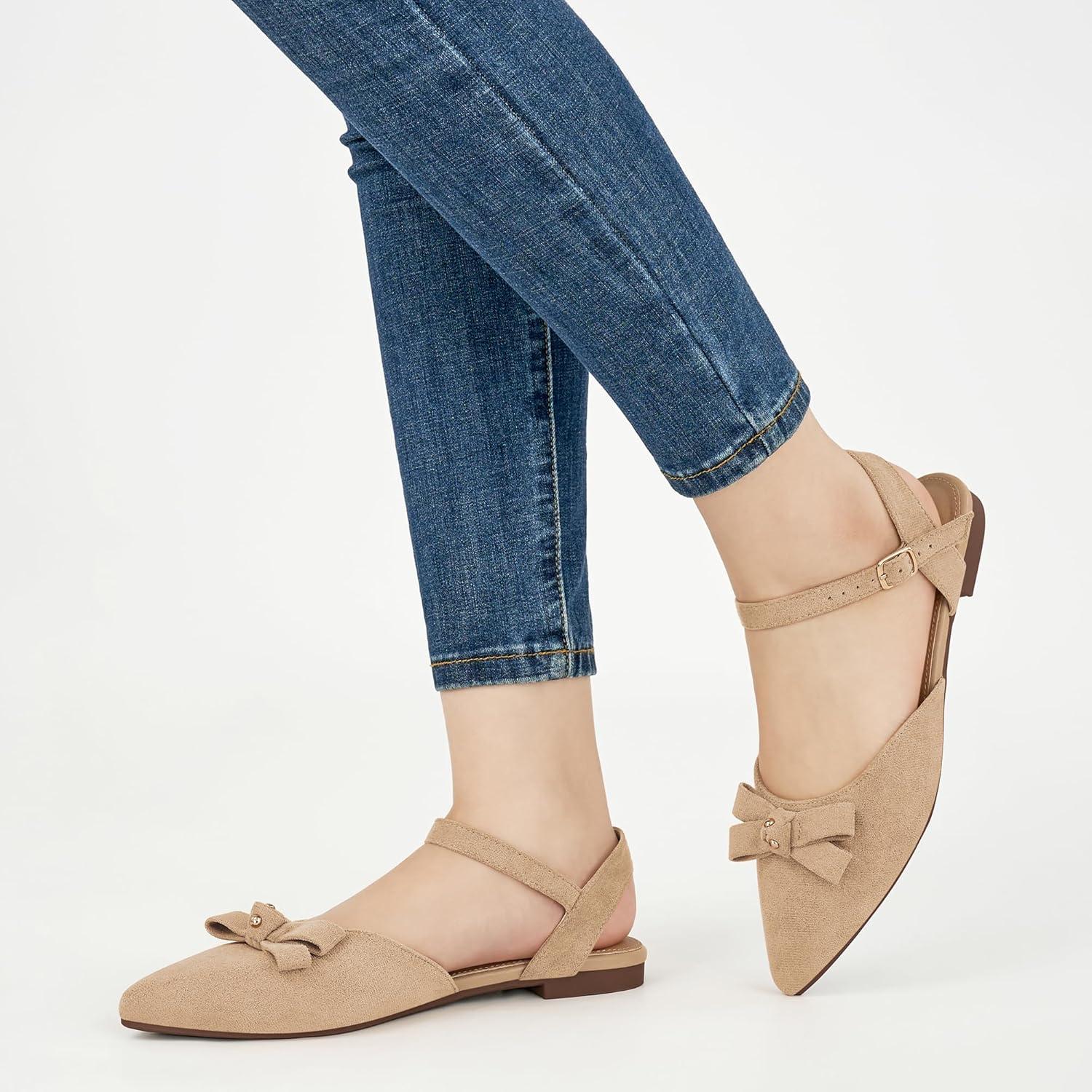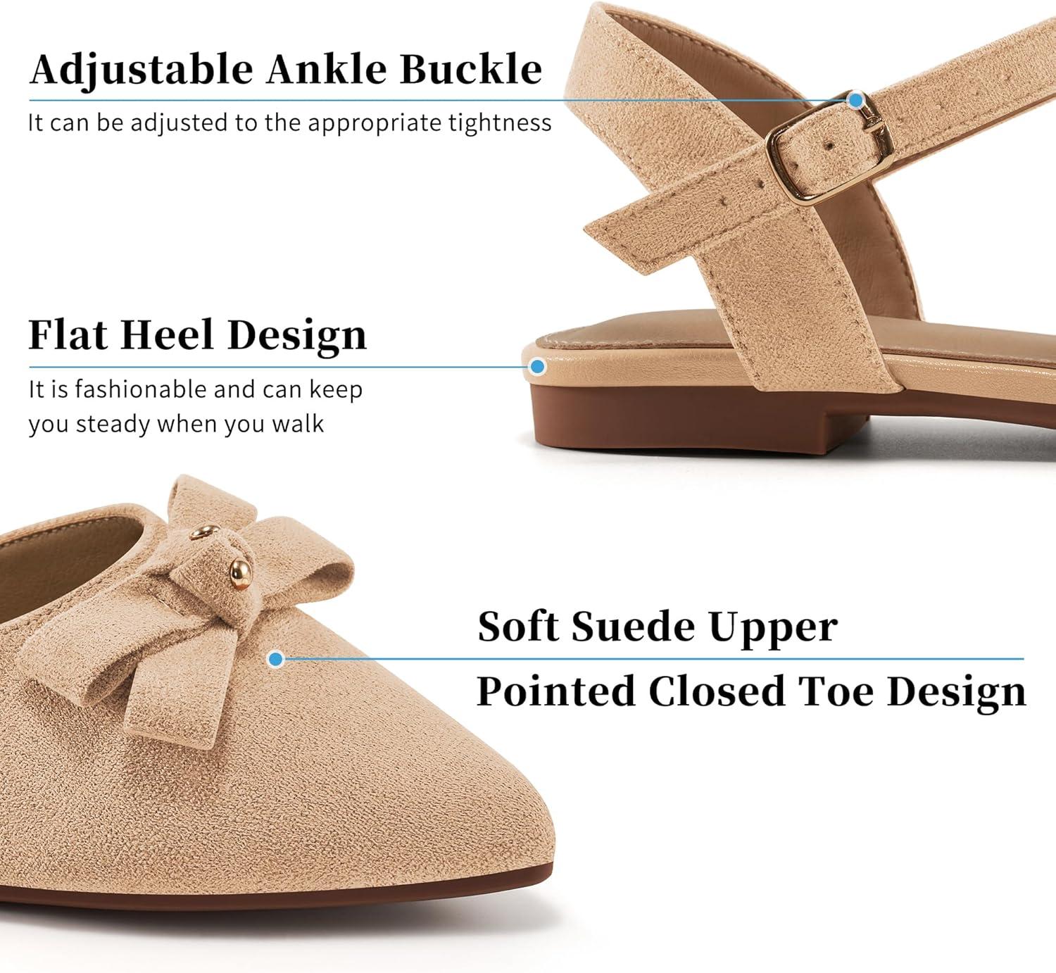 Alicegana Womens Sandals Flat Shoes – Closed Pointed Toe Dressy Flats 2025 Comfortable Business Casual Walking Sandal(Lightbrown)