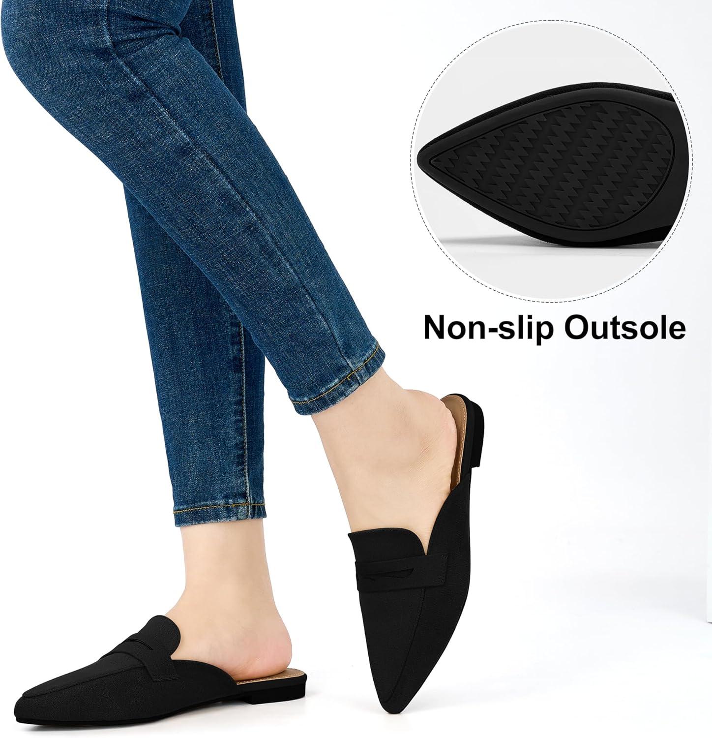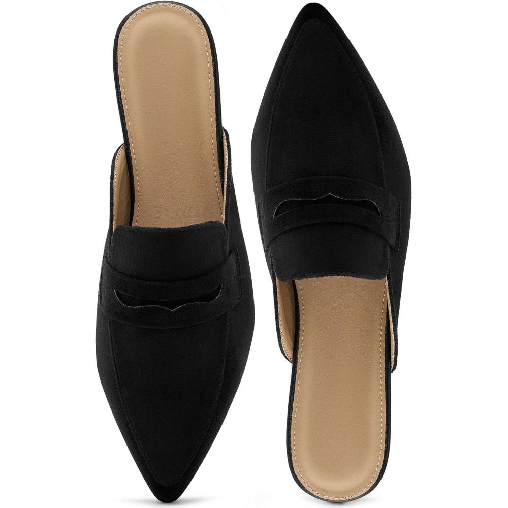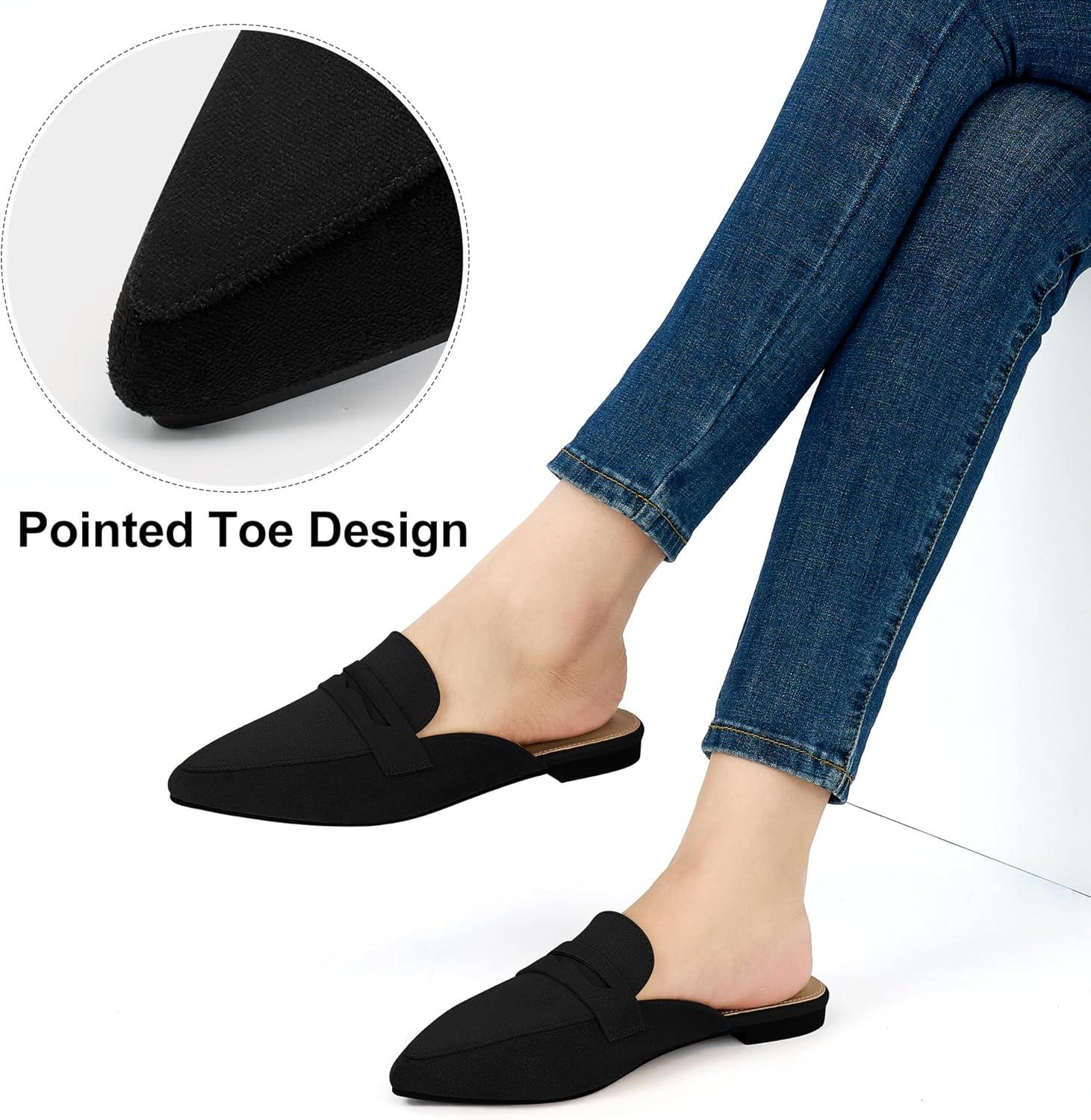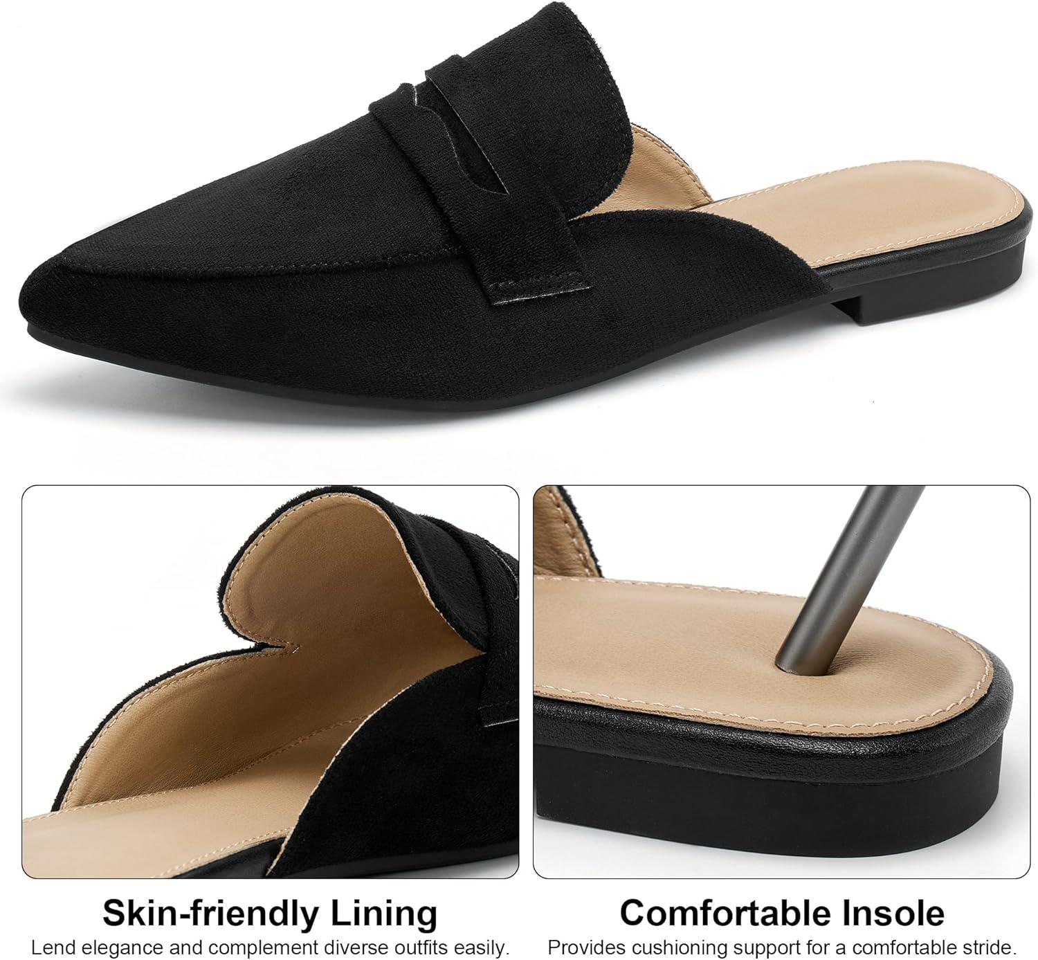 Alicegana Mules for Women Slingback Flats: Pointed Toe Business Casual Shoes Comfortable Suede Dressy Work Backless Loafers(Black)