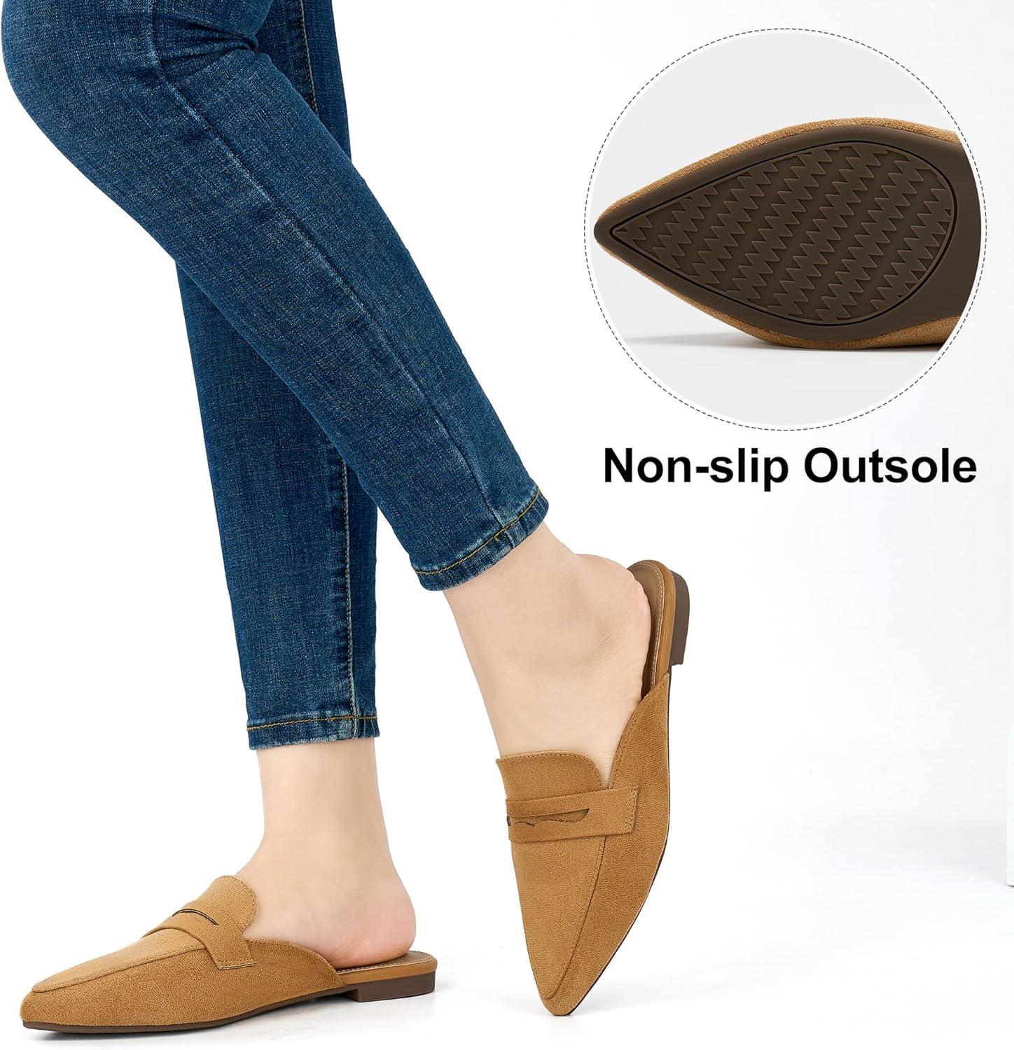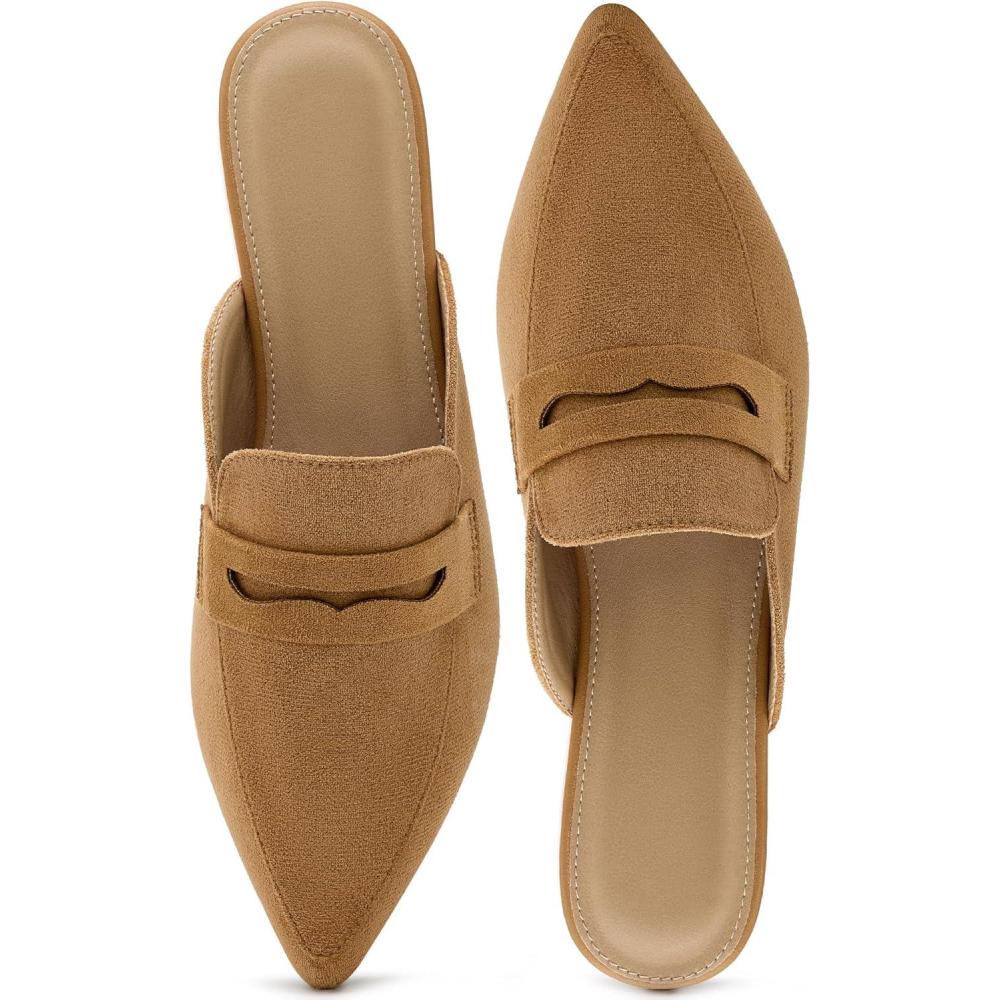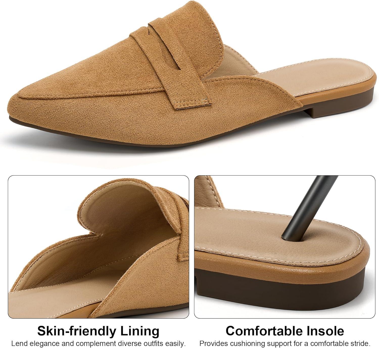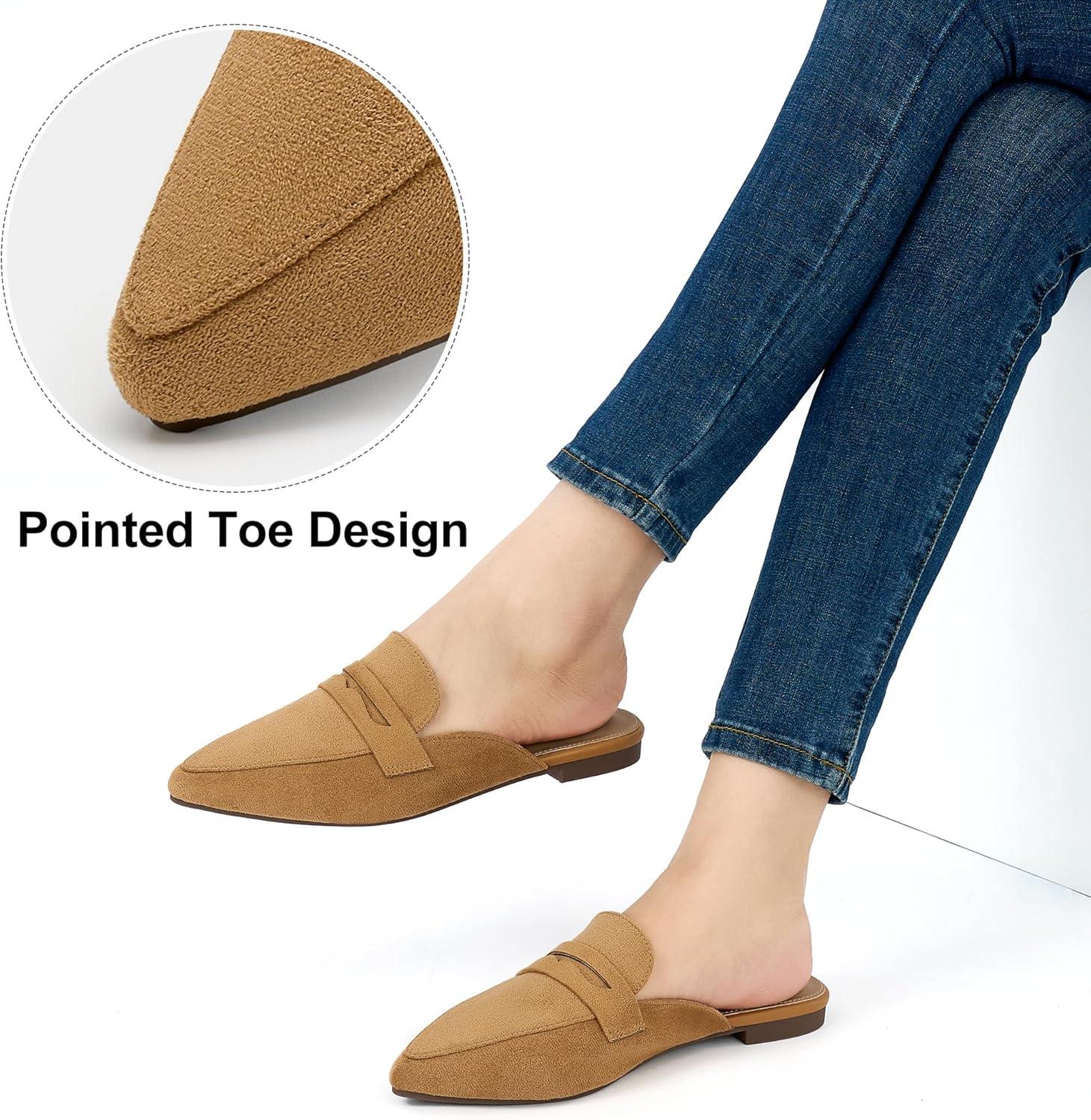 Alicegana Mules for Women Slingback Flats: Pointed Toe Business Casual Shoes Comfortable Suede Dressy Work Backless Loafers(Brown)