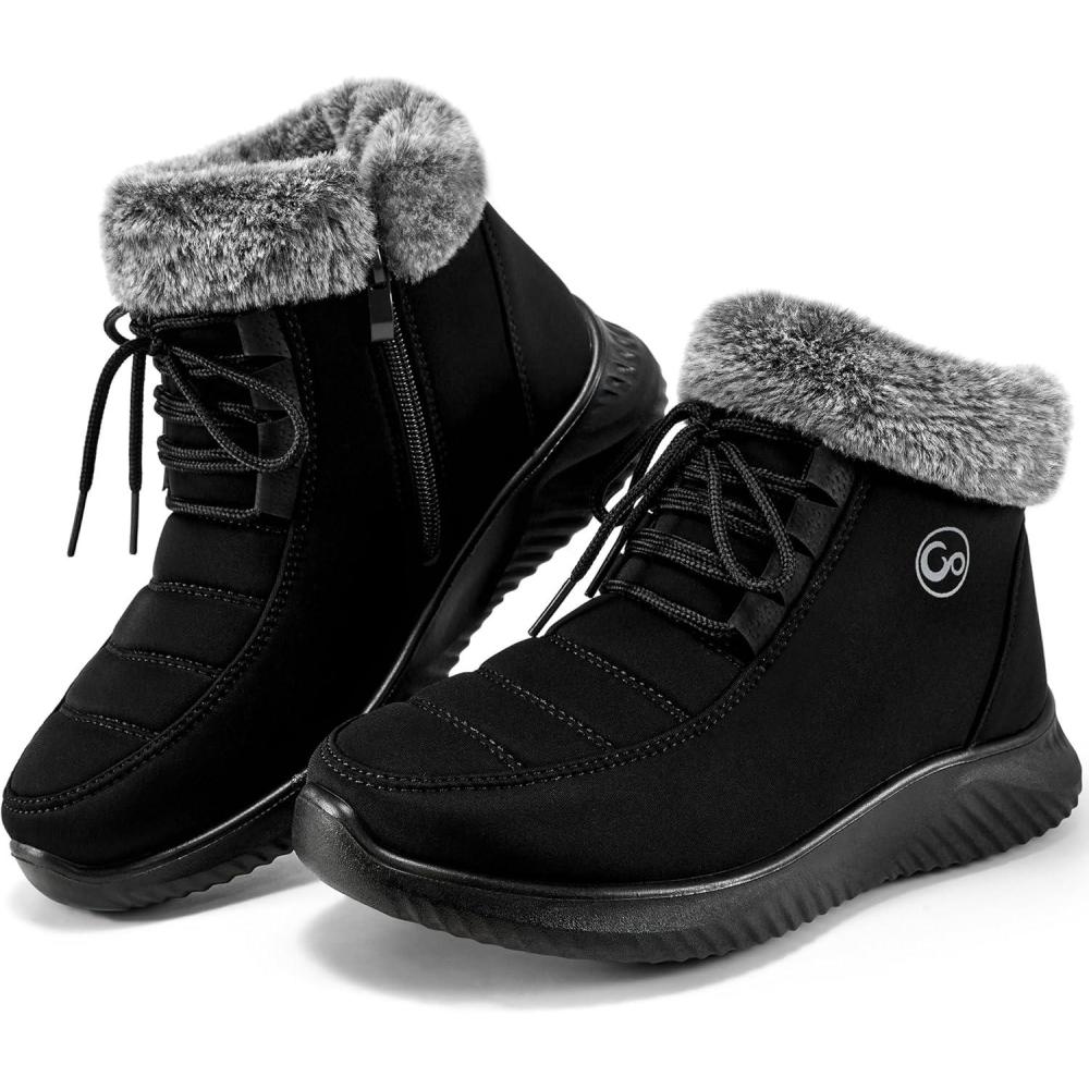 Alicegana Winter Boots for Women Warm Fur Lined Snow Shoes Slip on Ankle Booties Comfortable Anti Slip Outdoor Boots 2025(Black)