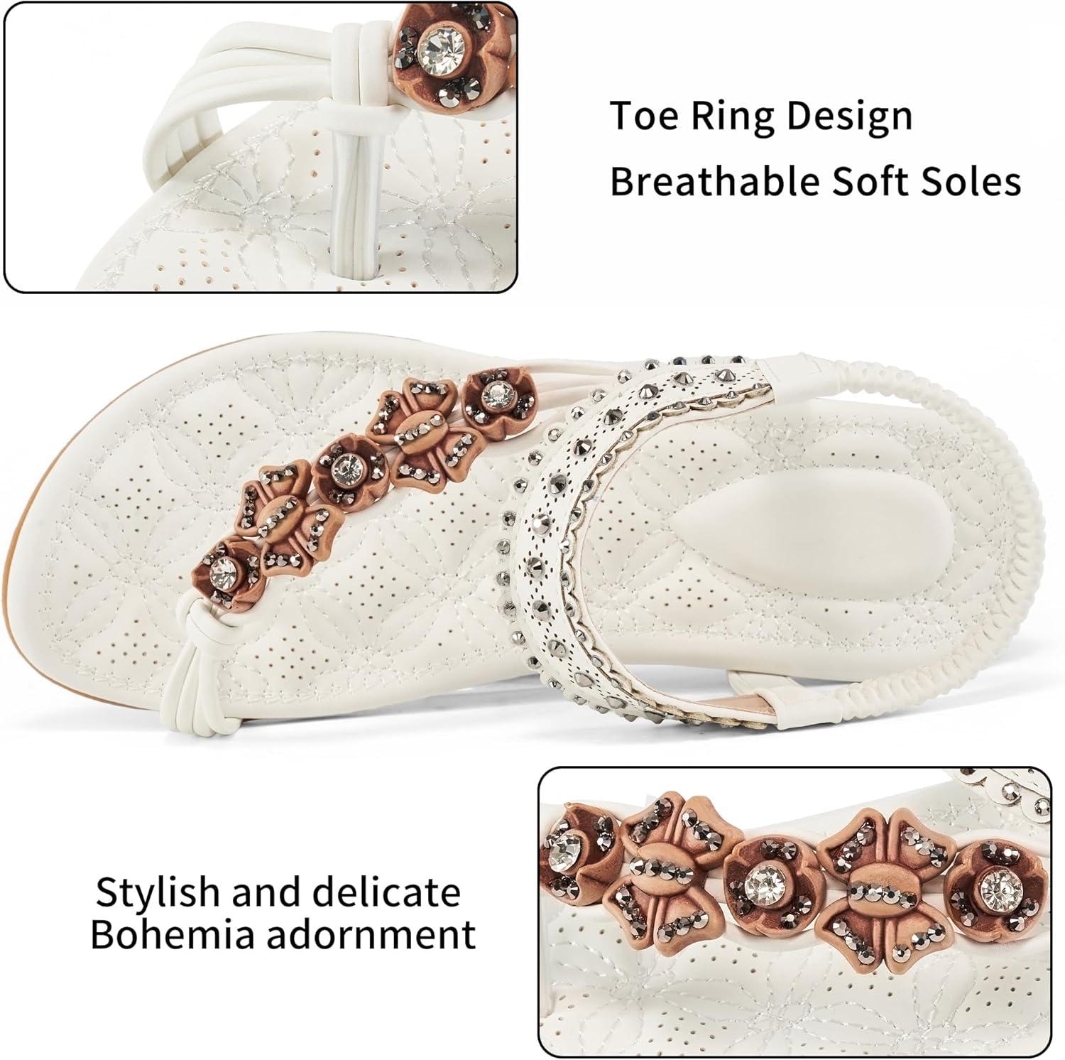 Alicegana Womens Sandals Dressy Flats: Bohemian Summer Comfortable Split Toe Shoes Walking Beach Gladiator(White)