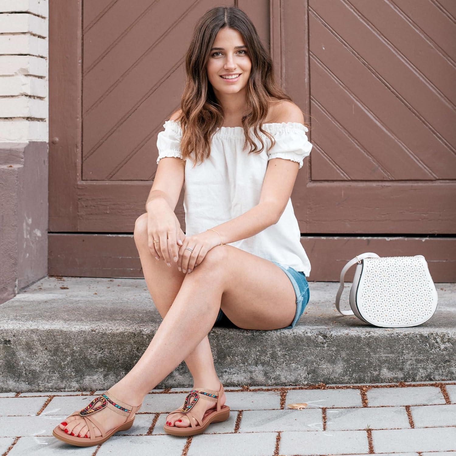 imageAlicegana Womens Sandals Orthopedic Shoes Comfortable Arch Support Dressy Bohemian Flats 2025 for Walking Beach VacationBlack