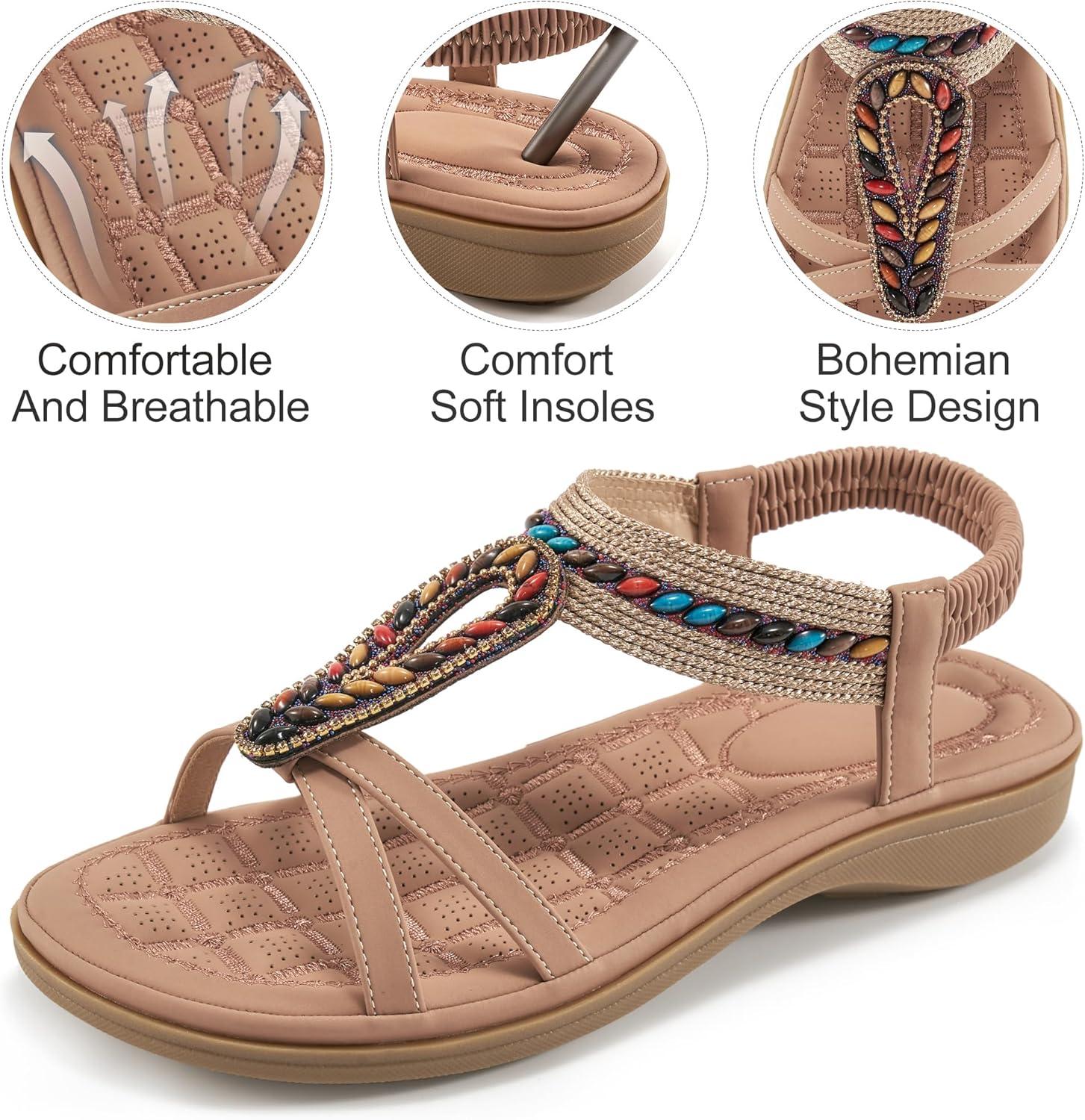 Alicegana Womens Sandals Orthopedic Shoes: Comfortable Arch Support Dressy Bohemian Flats 2025 for Walking Beach Vacation(Black)