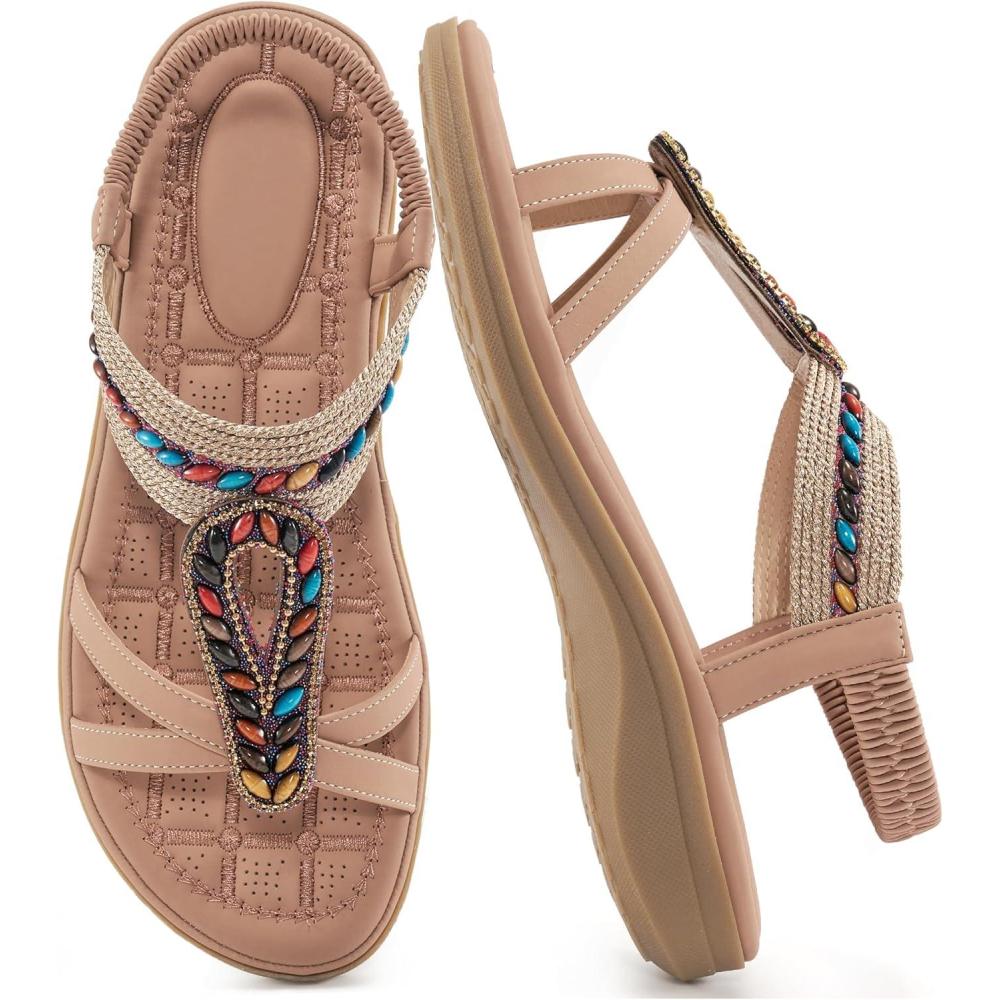 Alicegana Womens Sandals Orthopedic Shoes: Comfortable Arch Support Dressy Bohemian Flats 2025 for Walking Beach Vacation(Darkpink)