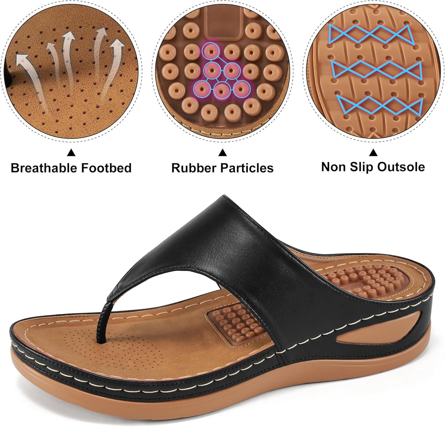 Alicegana Womens Sandals Wedge Shoes: Comfortable Dressy Summer Flip Flops Casual Walking Beach Slides(Black)