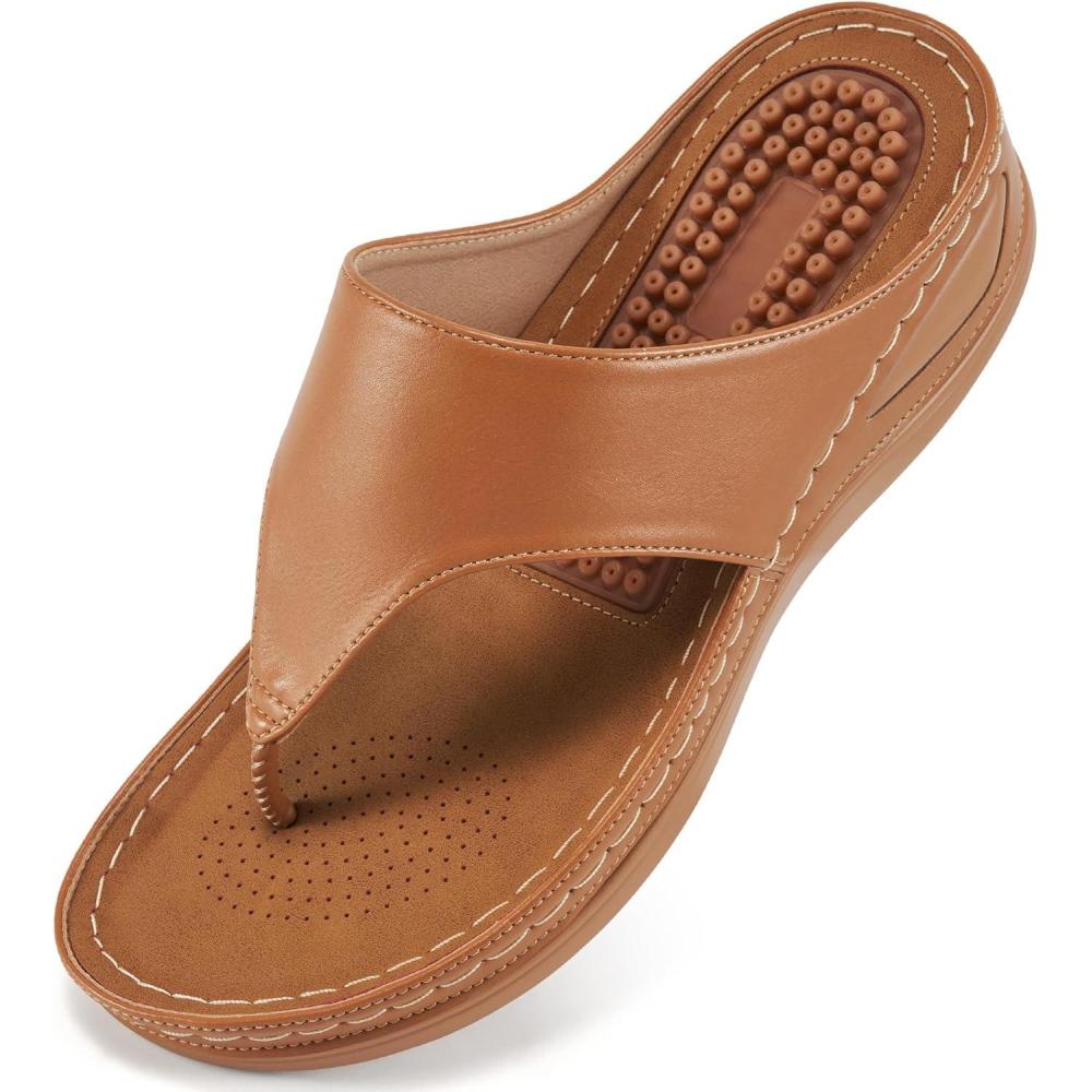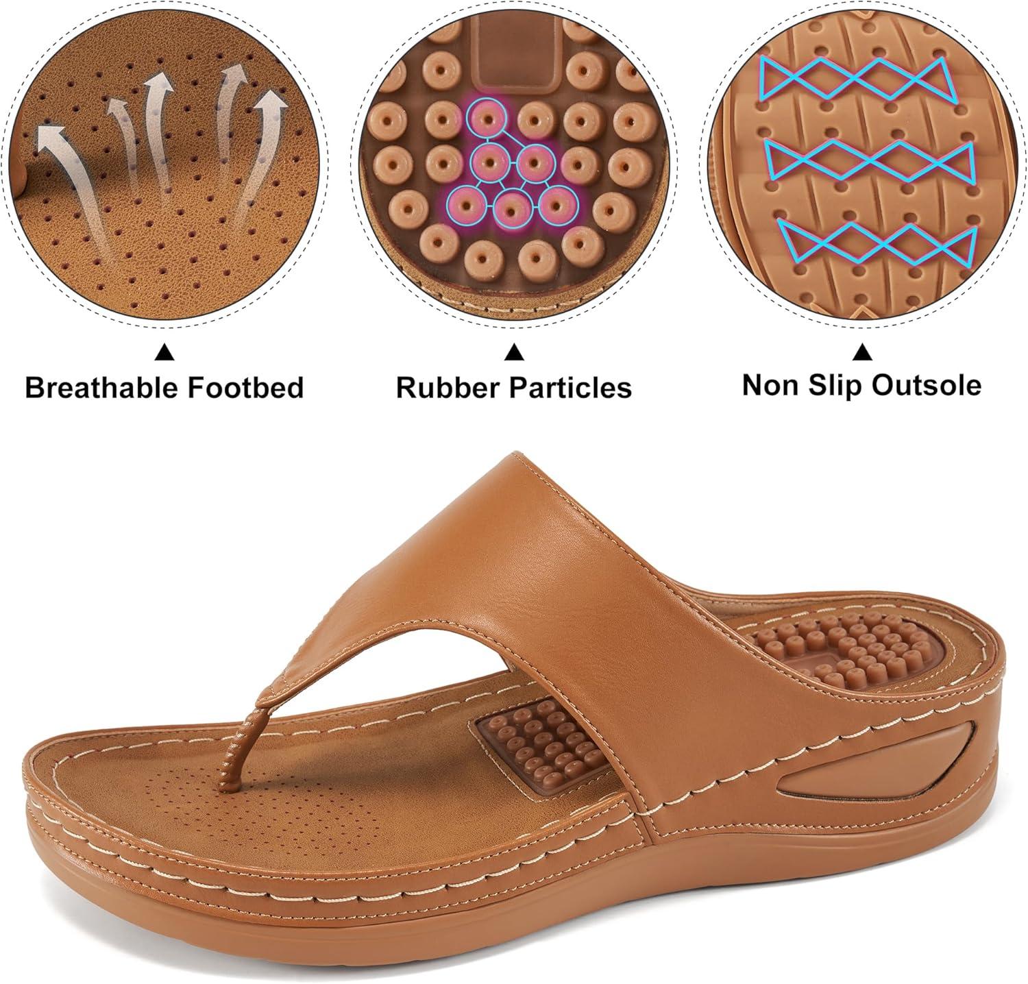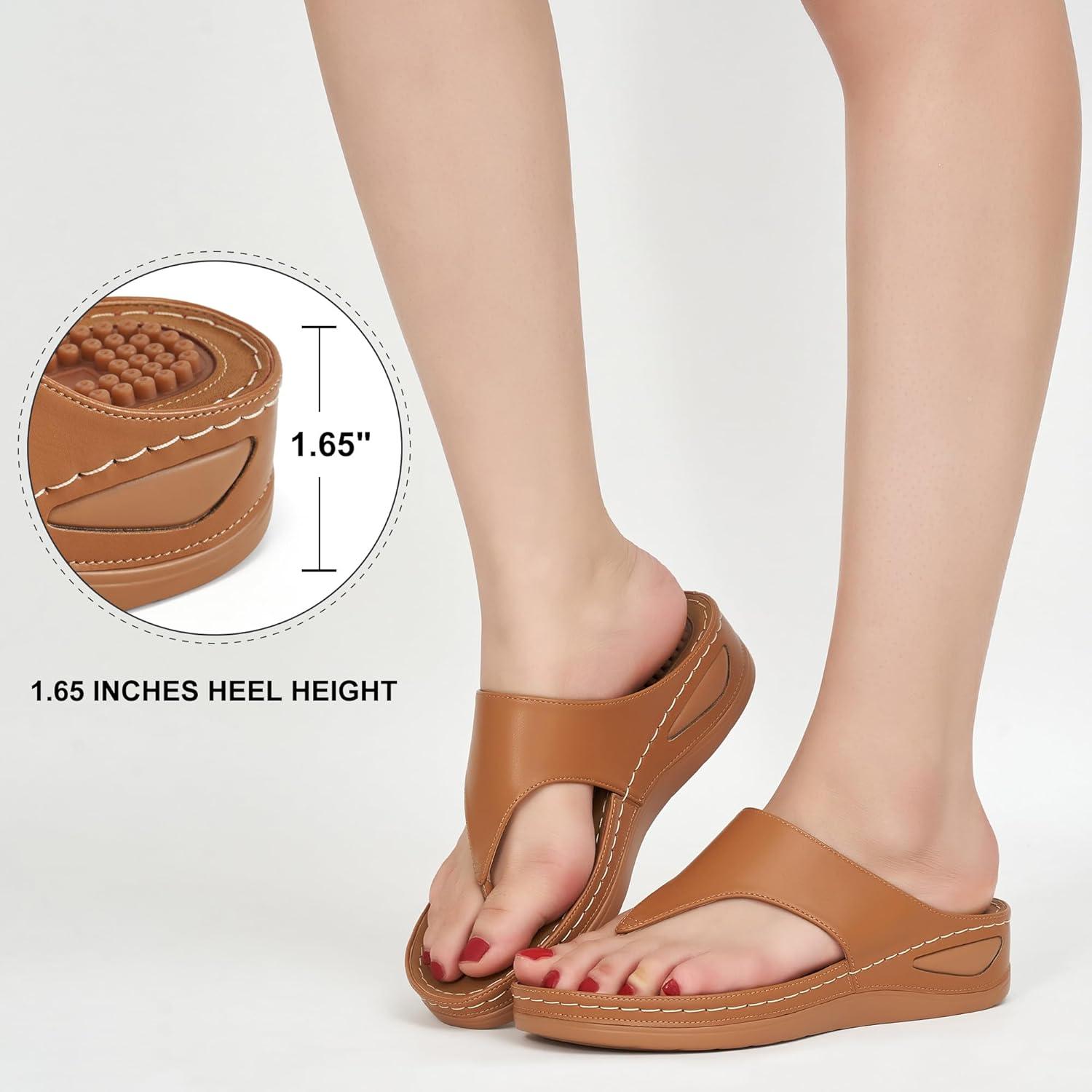 Alicegana Womens Sandals Wedge Shoes: Comfortable Dressy Summer Flip Flops Casual Walking Beach Slides(Ligntbrown)